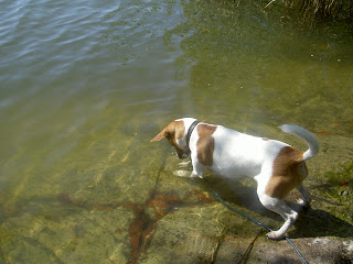 Sverige hade varmast väder i Europa idag på nationaldagen, sägs det. Kanske därför vi bestämde oss för att ta Kasper på badutflykt. Vid Rösjön finns det ett hundbad intill människobadet, så vi åkte dit med fika och allt.