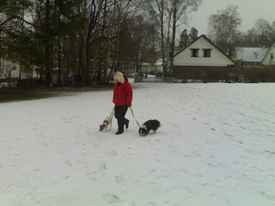 Vi testade också en i taget att promenera runt lite med båda hundarna.