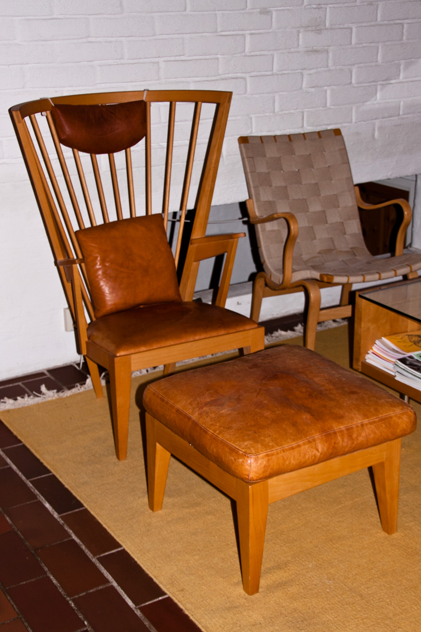 Den här väldesignade Norrgavelstolen med tillhörande fotpall hör till mina favoriter här hemma. Mathssonfåtöljen Eva i bakgrunden är ju också en designklassiker, men inte alls lika skön att sitta i.