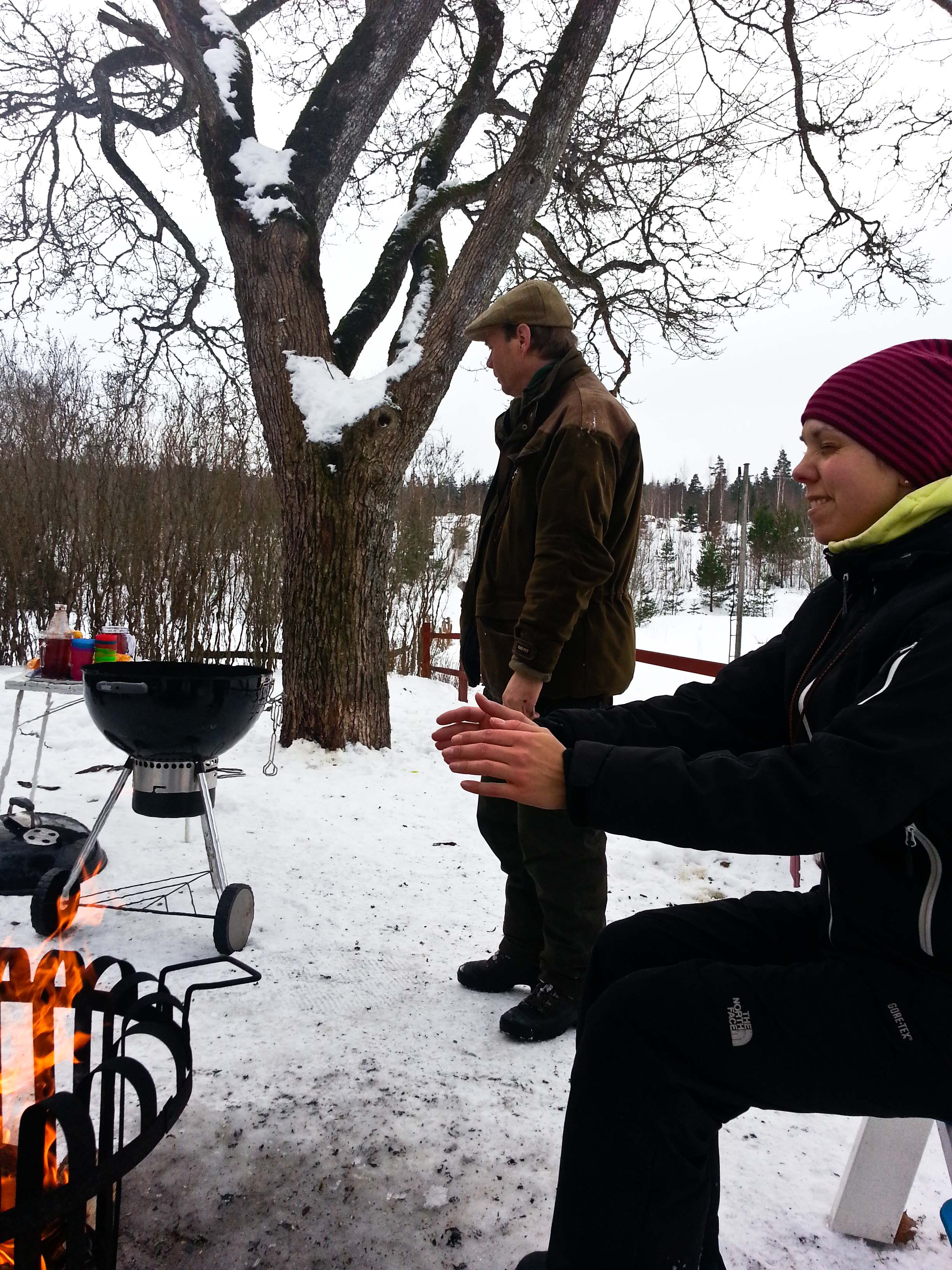 Tillbaka på gården vidtog mysig korvgrillning. Vid det laget var alla rätt hungriga och det var ett perfekt sätt att avsluta träningen med lite tillhörande eftersnack. Jag ska dit igen om exakt en månad. Vågar man hoppas att snön är borta då?