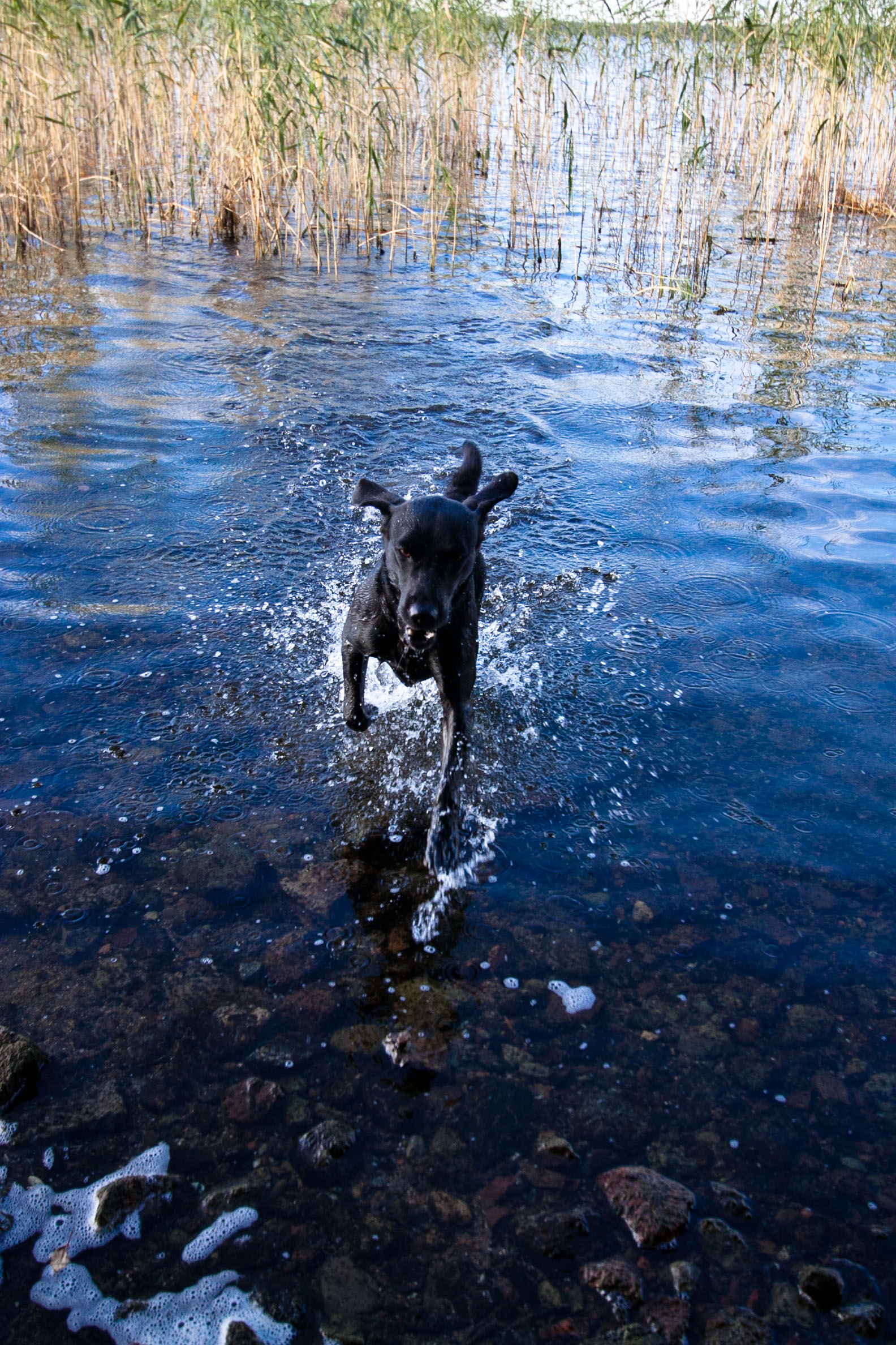 Hastigt kommer han in till mig, Lakrits, med bollen som flöt i vassen.