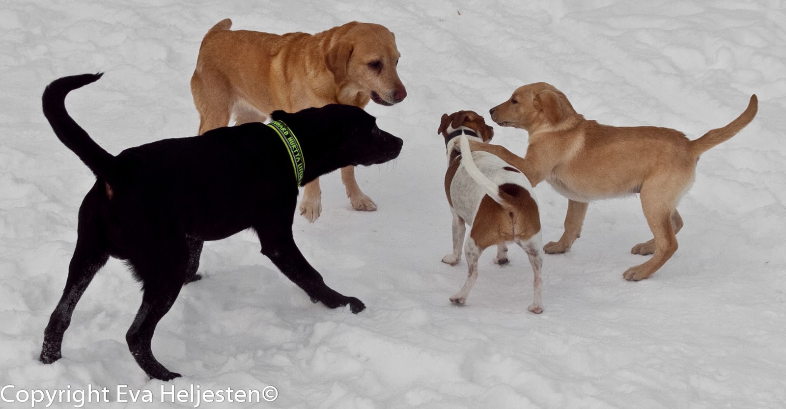 Vilket härligt gäng! Hrm, mina labbars svanstippar är alltid vildvuxna.