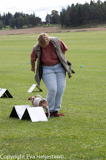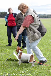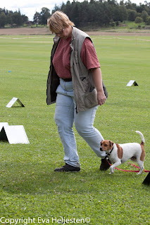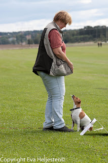 Dessförinnan hinner vi med en tävling till 19 sep. Anette menar att skillnaden i hans nosande kan ha att göra med att han är så ovan att vara på tävlingsbana (dvs. på andra planer än vår egen) medan många av de andra hundarna har ett förflutet på lydnadsbanan osv. Kan ligga något i det. Finns chansen ska jag försöka ta med honom och bara titta på någon tävling framöver för att få mer platsvana.