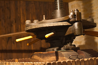 Jag jobbade en stund på eftermiddagen medan Rolf tog en liten cykel- och tupplur, och sen hade vi överenskommit om visning i vår värds cave klockan 18. Jag har varit i en Sancerre-cave tidigare, 2009, men denna var både mindre och modernare. Vår värds franska var stundom snabb och svår, men 3000 hektar hade de med vita sauvignondruvor och röda pinot noir. Efter visningen vidtog frikostig dégustation(före middagen) med fyra vita, ett rosé och två röda viner. De vita gick från calcaire till silex, chêne och slutligen vieux. Det vill säga samma druva i samma mikroklimat, men först på kalkjord, sen flinta (består mest av kisel), sen med ekfat och till sist med gamla vinstockar (sextio år). Flintavinet skulle lämpa sig särskilt väl till fisk, medan det gamla vinet var till fågel. Rosévinet var ganska sött och lätt, och de röda var också tämligen lätta och passade till rött kött. Det äldre röda smakade ekfat.