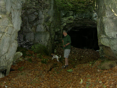 På morgonen cyklade vi allihop upp på Svalberget (Montagne des alouettes) för att försöka hitta en cache. Den misslyckades vi med, men vi hittade det intressanta stället – en gammal stenbrottsgrotta. Kasper ville undersöka den noggrant. Turen blev 7,5 km.