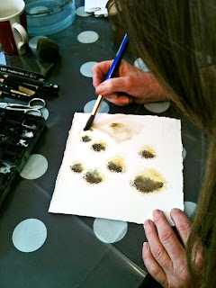 Lite pretentiös rubrik, men Rolf jag jag deltog på en fotoutställning (vårt livs första) i Vallentuna i våras. Jag har gått termin 2 och 3 på akvarellkurs. Och jag har sålt några akvareller, dels i form av upptryckta julkort och dels några passepartoutinramade original.