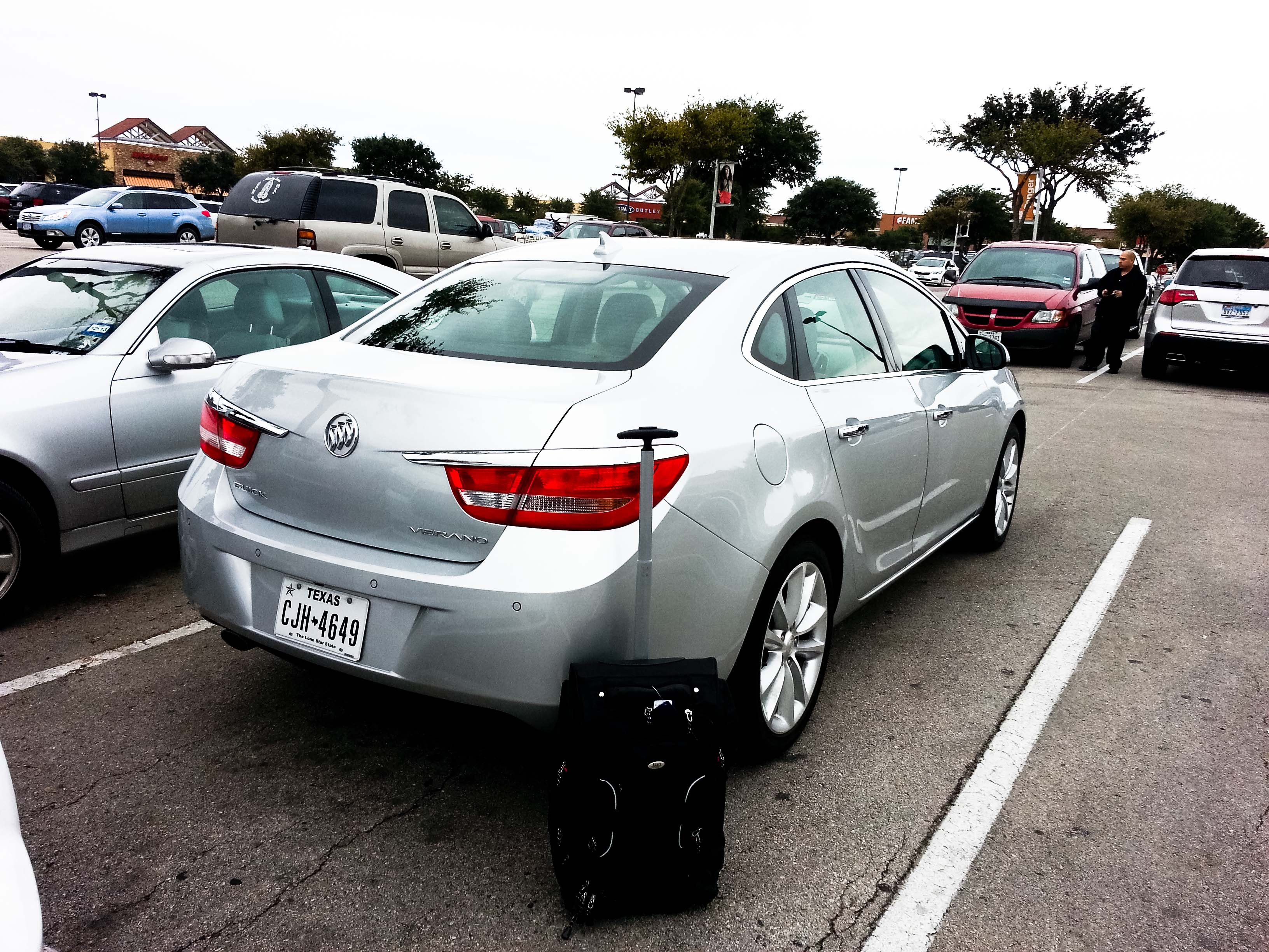 Dags att åka ut på en liten resa norrut i Texas före hemfärd. Hyrbilen är en Buick och väskan är nyinköpt för att jag ska få med allt jag shoppat till Sverige igen.