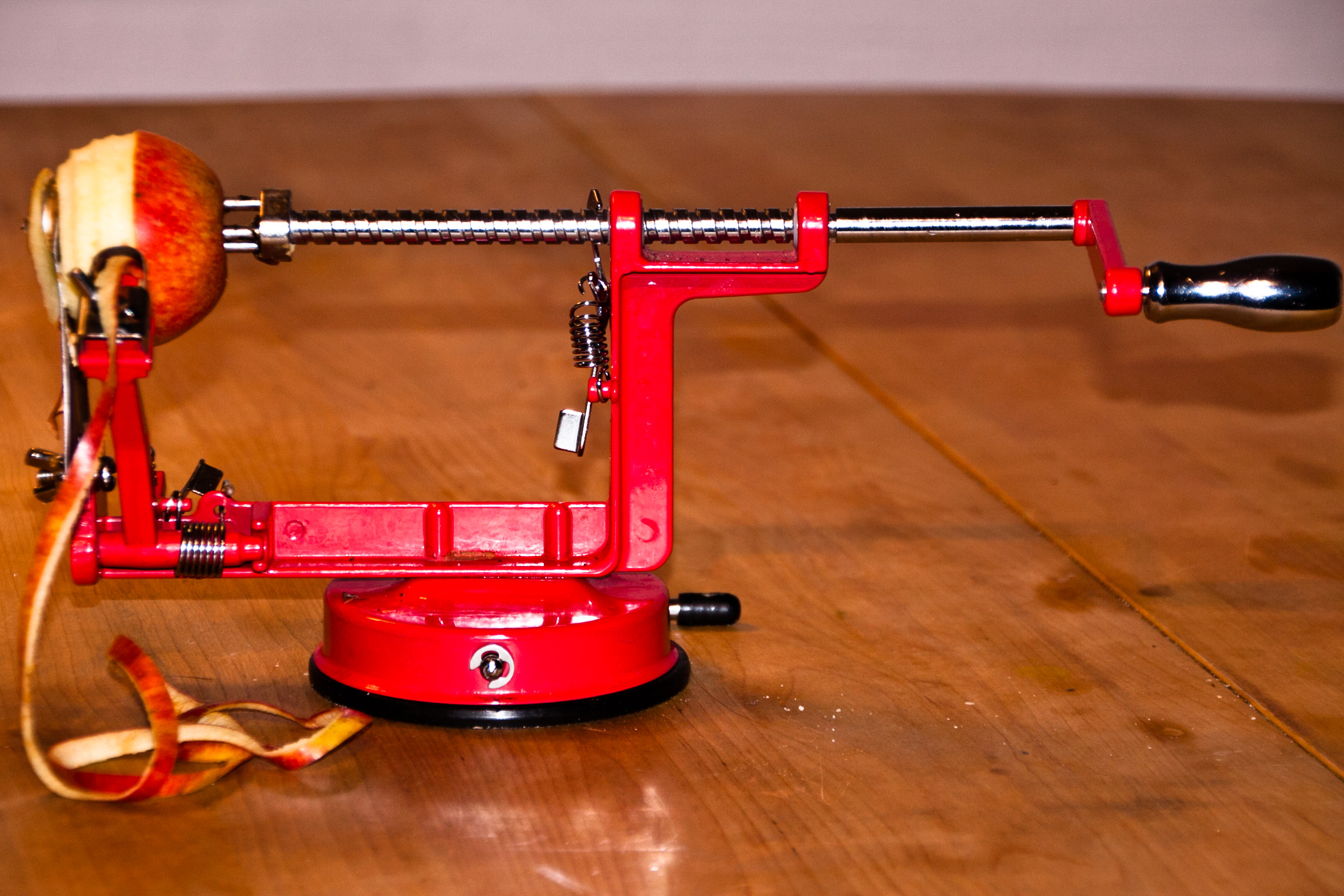 En röd äppelskalare skalar ett rött äpple. Kan det bli rödare?