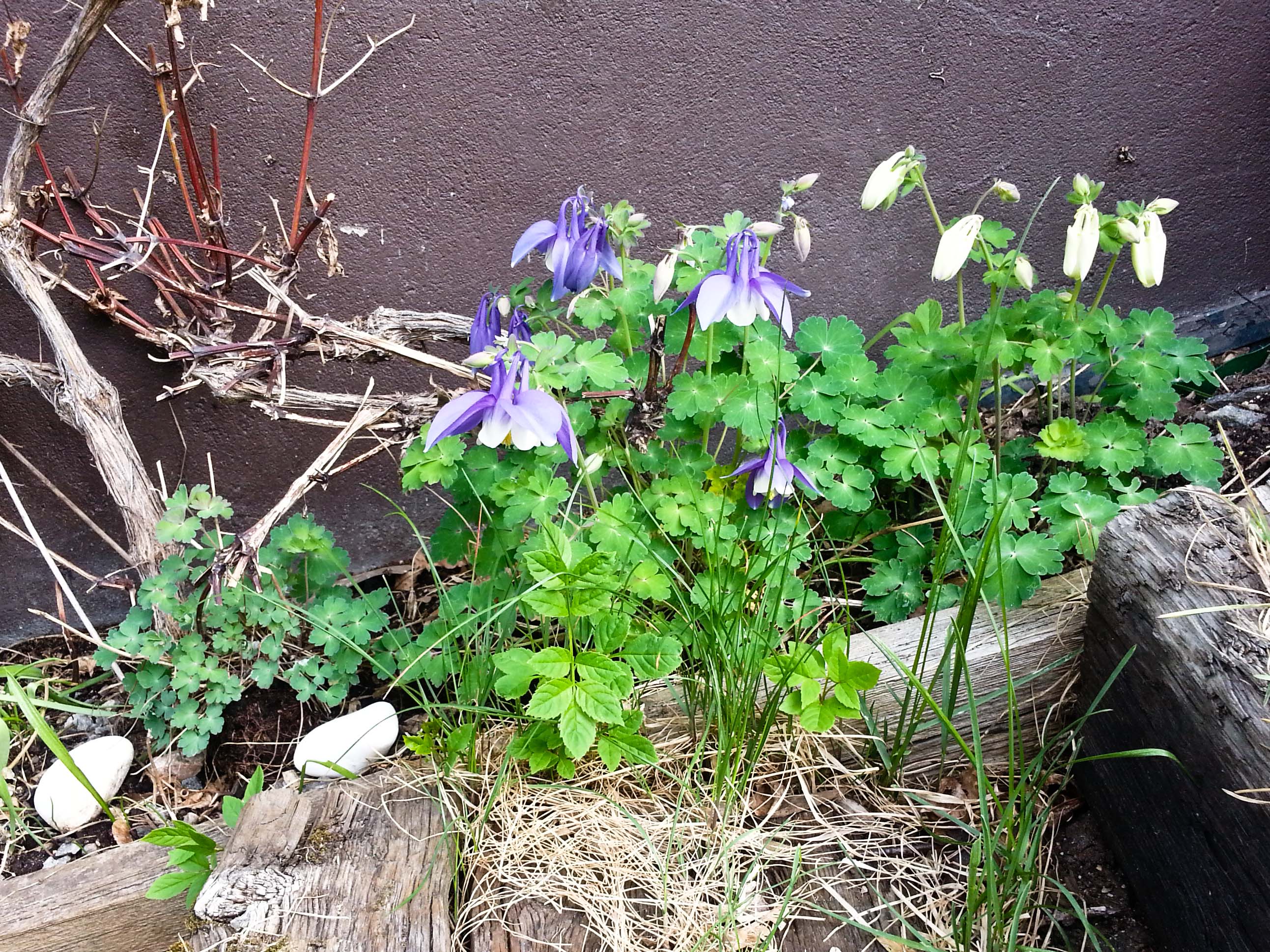 Nu i mitten av maj blommar denna akleja. Parallellt med vitsippor och blåsippor, kan tilläggas.