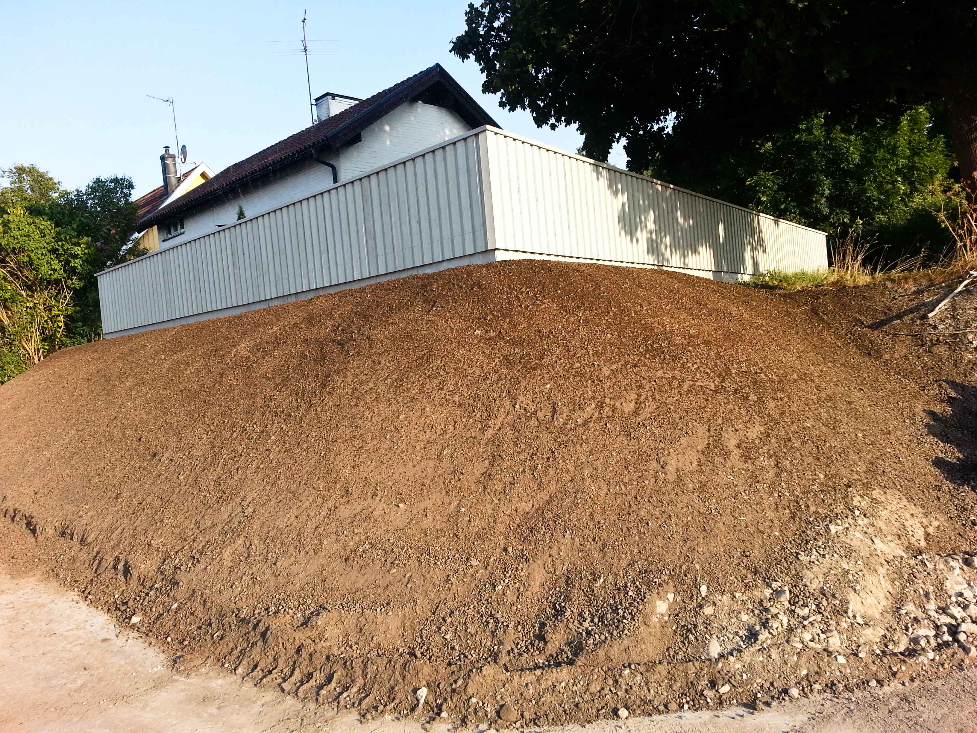 En enorm jordslänt fick vi plötsligt. Numera börjar den bli gräsbevuxen, tack och lov.