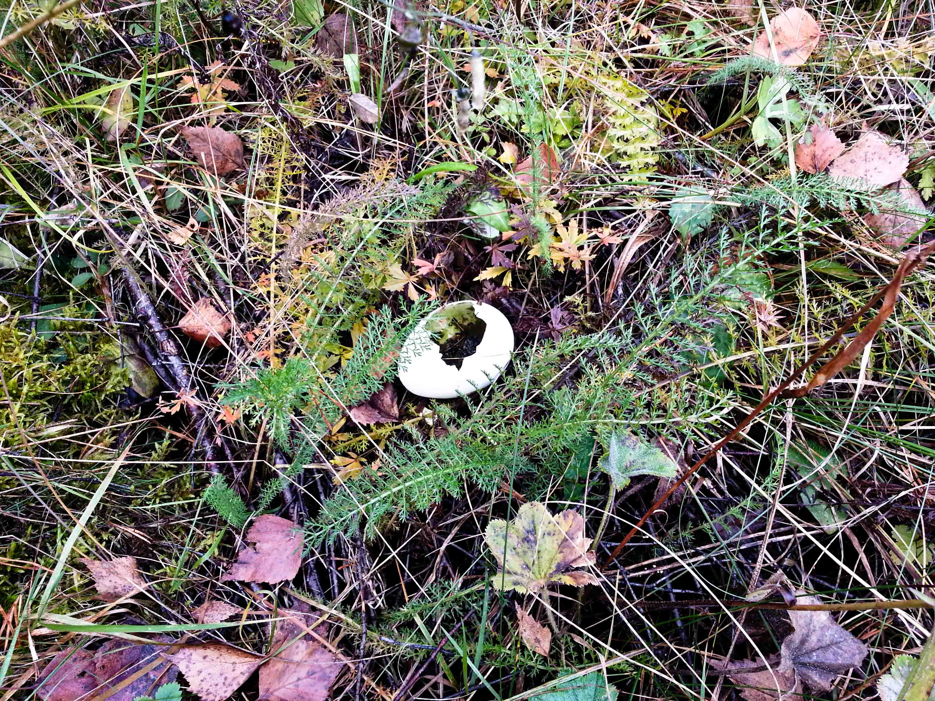 Vildlivet här ute i Frösunda… Ett öppet och tömt ganska stort äggskal (större än hönsägg) hittade jag idag i min närmaste hage.