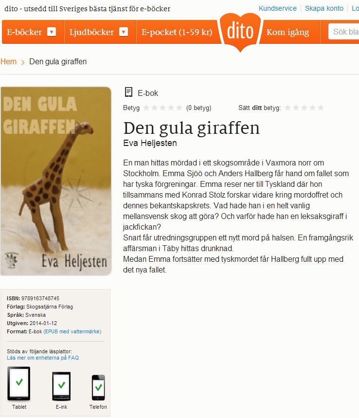 Det är kul att se att boken nu nått ut på Dito.se, en e-bokhandel på nätet. När du läst den vore det jättekul med en åsikt och ett betyg på sajten!