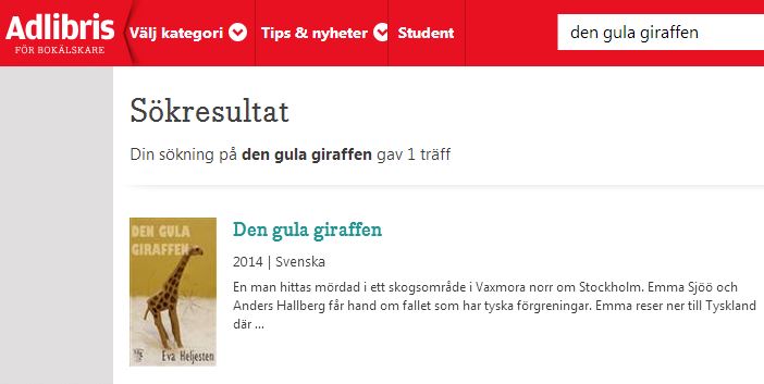 Jag har ett tag försökt hitta boken på Adlibris, utan att lyckas. Nu råkade jag söka på boktiteln istället för författaren. Och vips fanns den! Det visar sig att deras databasinfo är lite knapphändig: