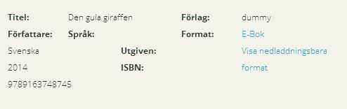 Det är ju helt klart en fördel om förlag och författarnamn finns med. Har nu kontaktat dem i ett försök att få detta tillrättat. Håll tummarna!