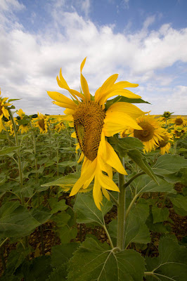 Precis i början av juli började de stora solrosfälten blomma. Det var helt otroligt vackert för oss nordbor som bara ser nån enstaka sån praktblomma vid nån stugknut här hemma. Men just mängdeffekten var enorm, mycket maffigare än gula rapsfält, som är nog så vackert. Vi frossade i att fota dessa villiga motiv ur alla upptänkliga vinklar och med alla objektiv vi kunde tänka oss. Ett litet urval…